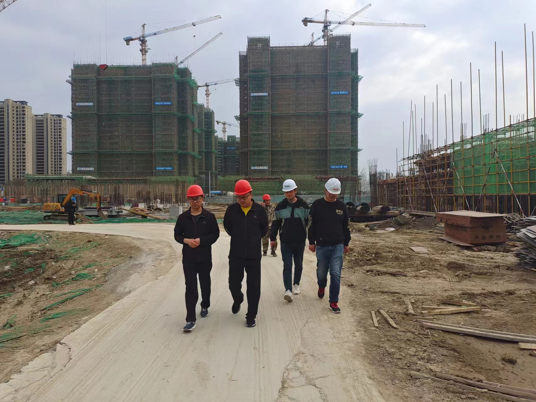 检查组先后来到科创园二期、知行学校幼高部、仁和苑、政通苑、锦绣新城、尚居雅苑等项目,重点检查了消防设施、扬尘防治、临时用电、脚手架、内支撑、临边防护、大型机械及工程过程相关资料。