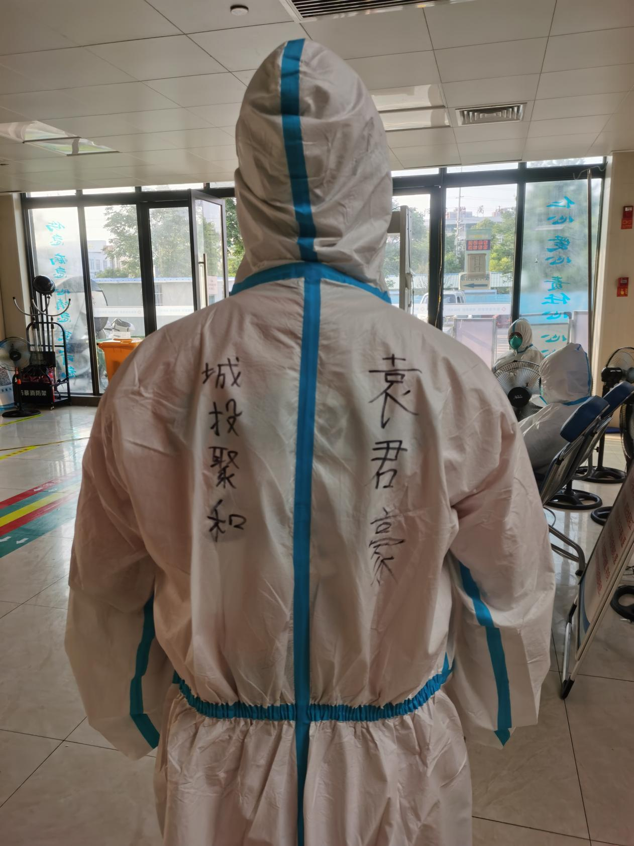 疫情期间,密切接触者集中隔离点无疑是离危险最近的地方。在这里,看到最多的就是大白和“蓝精灵”(一种蓝色一次性隔离服),工作人员每天要穿脱防护服数次,早晚还好,中午气温上来的时候防护服里密不透风,温度可想而知。每次脱下防护服,里面的衣服都被汗水浸透。