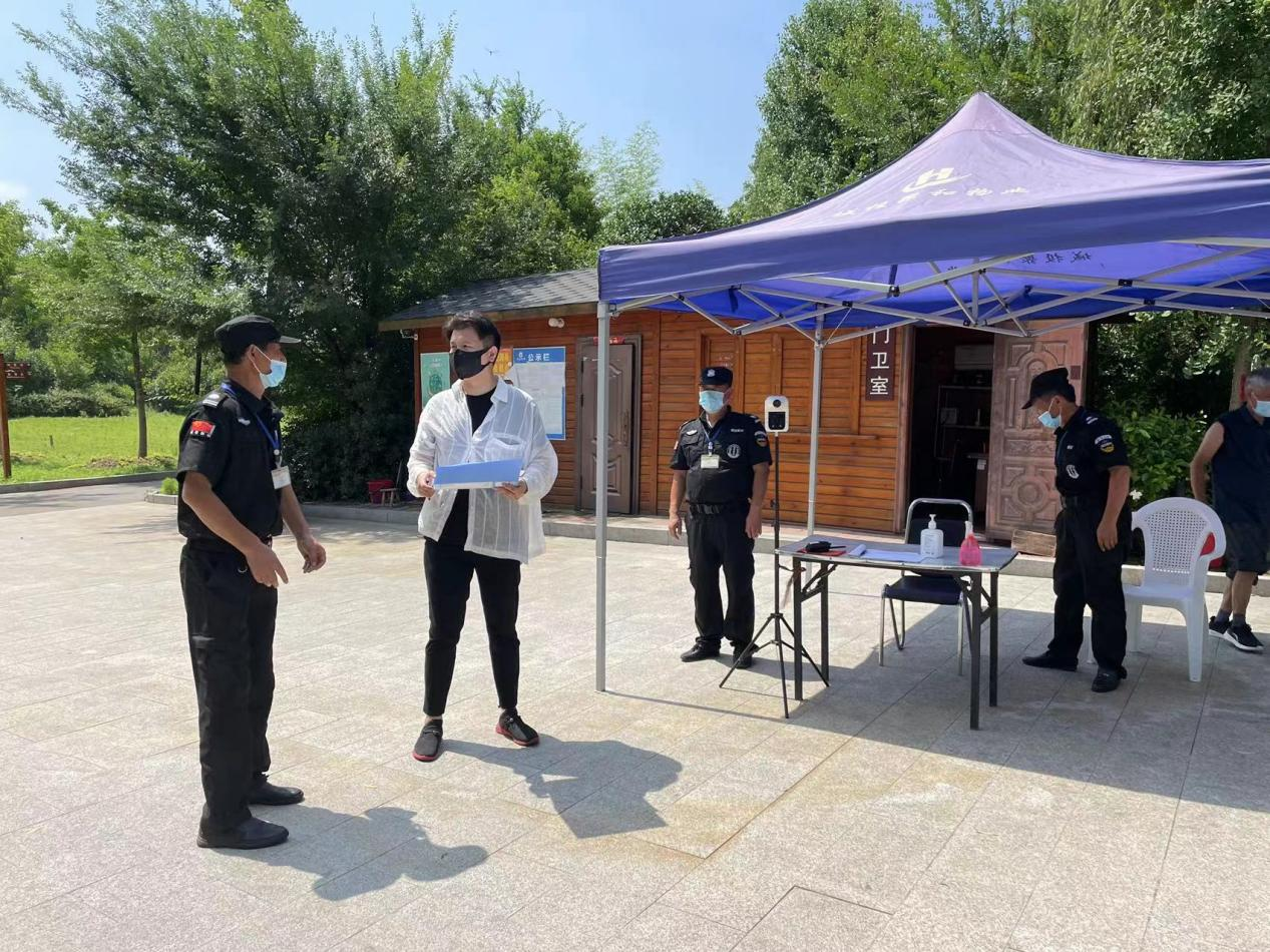 文旅公司员工一行先后来到西淝河湿地文化园研学教育基地中心栈桥,西淝河湿地植物园等地方,重点检查了研学教育基地红木栈桥等危险性较大的工程安全管理措施落实情况,并进行疫情防控工作安排。实地对进出口体温检测、安检管理、园内消杀、突发应急处置、扫码进入等防疫措施落实情况进行了检查。景区防控专班按照疫情防控措施严格执行,对各景区实行轮班值守。
