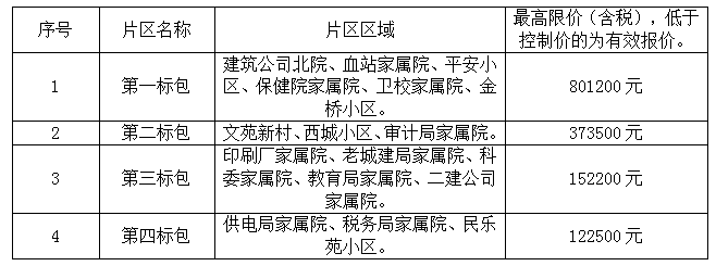 3、招标内容:按照“共建共享”原则,光交接箱建设要求:室外统一采用SMC箱体,光交或光缆标牌需采用打印的标牌,在箱门中上部印上“***小区(街道)四网共享光交 ”,并喷涂编号,光交箱基础必须牢固;光缆工程要求:光交箱至分纤箱之间的引入光缆、分纤箱至室内弱电箱之间的皮线光缆,同光率检测抽样比例不应低于20%,架空、沿墙钉固,过路:架空过路新建钢绞线,线缆捆扎整齐,加强芯、金属屏蔽层及金属铠装层均应终端或接地连接;分纤箱及到户光缆工程施工要求:四网共建共享分纤箱为复合材料,原则上按照每个单元门至少放置一个,每户敷设1根1芯皮线光纤,片区内通信基站弱电线缆沿路捆扎整齐,小区以外经过的通信基站其它传输线缆由建设单位进行拆除。共分为4个标段: