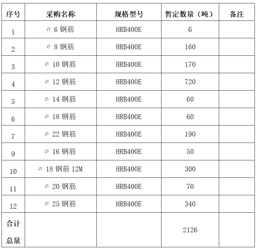 2、招标内容:地下室钢筋原材料,工程量约2126吨。