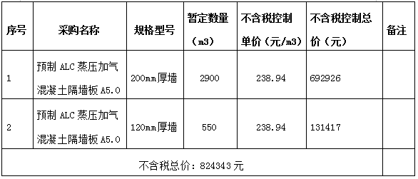 6、最高投标限价(报总价):824343元(不含税);详见下表清单,低于控制单价且低于控制总价的为有效报价。